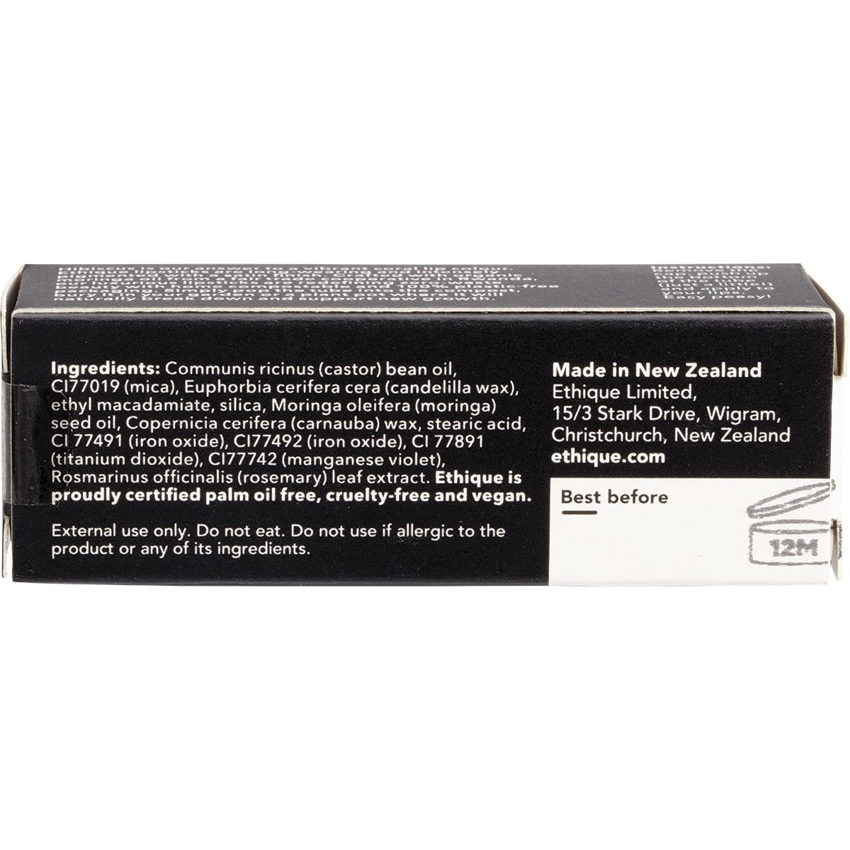 Communis Ricinus (Castor) Bean Oil, CI77019 (Mica), Euphorbia Cerifera Cera (Candelilla Wax), Ethyl Macadamiate, Silica, Moringa Oleifera (Moringa) Seed Oil, Copernicia Cerifera (Carnauba) Wax, Stearic Acid, CI77491 (Iron Oxide), CI77492 (Iron Oxide), CI77891 (Titanium Dioxide), CI77742 (Manganese Violet), Rosmarinus Officinalis (Rosemary) Leaf Extract.